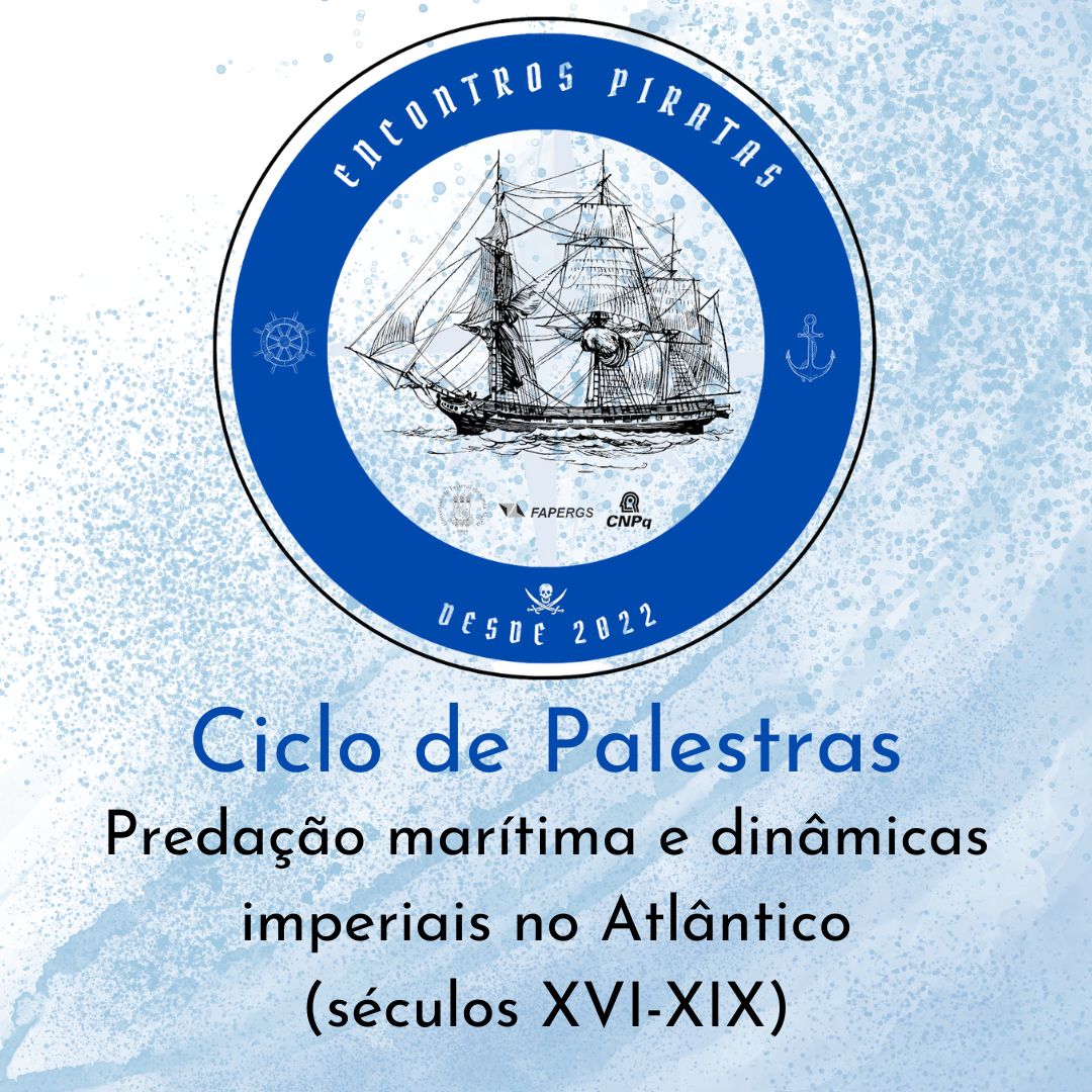 Divulgamos o ciclo de palestras Encontros Piratas: predação marítima e dinâmicas imperiais no Atlântico (séculos XVI-XIX). A atividade é parte do projeto de pesquisa Encontros Piratas: base de dados online sobre a predação marítima no Atlântico Sul (séculos XVII e XVIII), sediado na UFSM e contemplado em edital FAPERS/CNPq de fixação de jovens doutores.