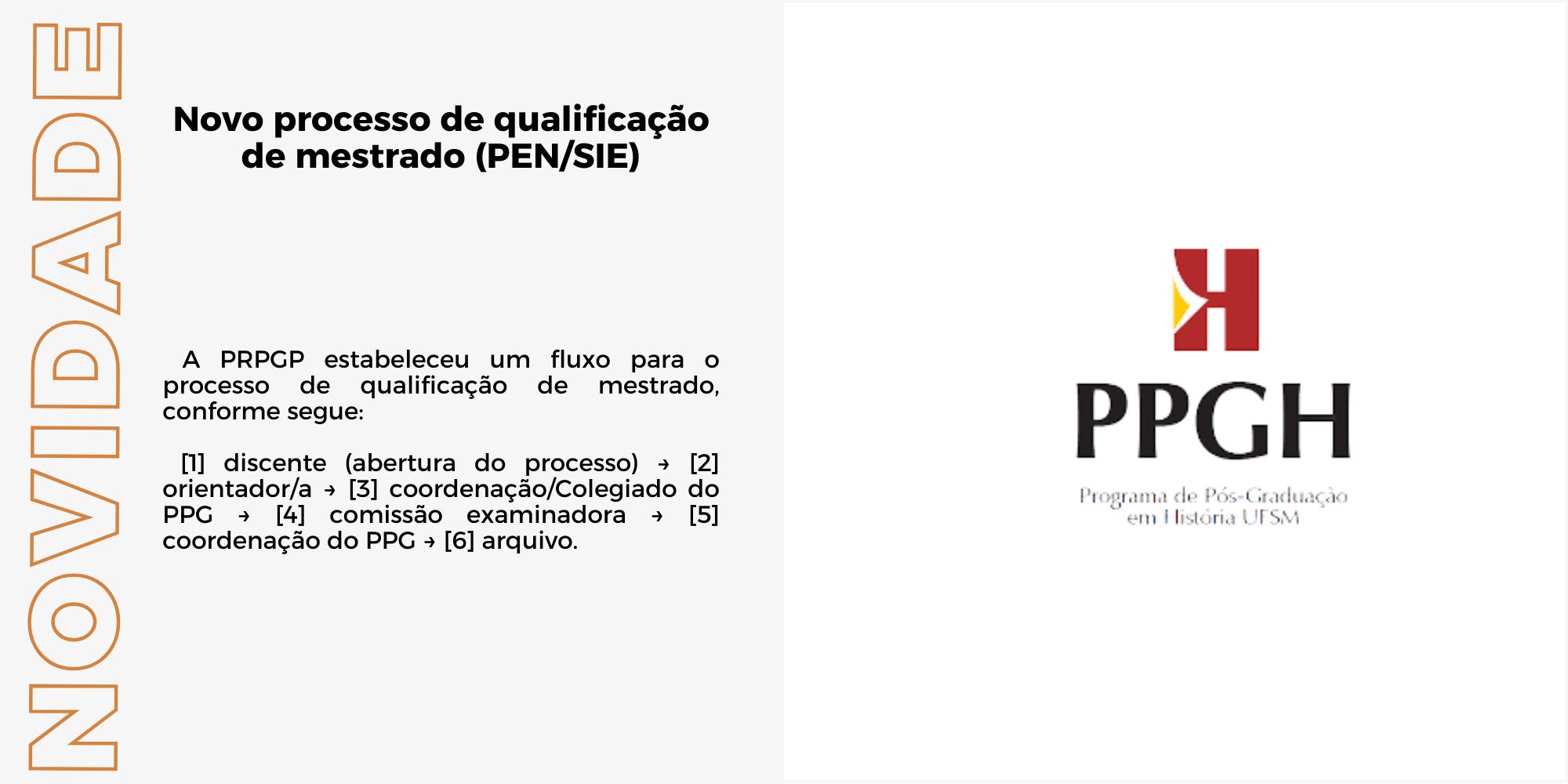• A SIPOS salienta que durante a adequação ao novo fluxo de qualificação de mestrado estabelecido pela PRPGP, está utilizando a plataforma PEN/SIE durante todo o processo, cujas novas orientações são as seguintes: