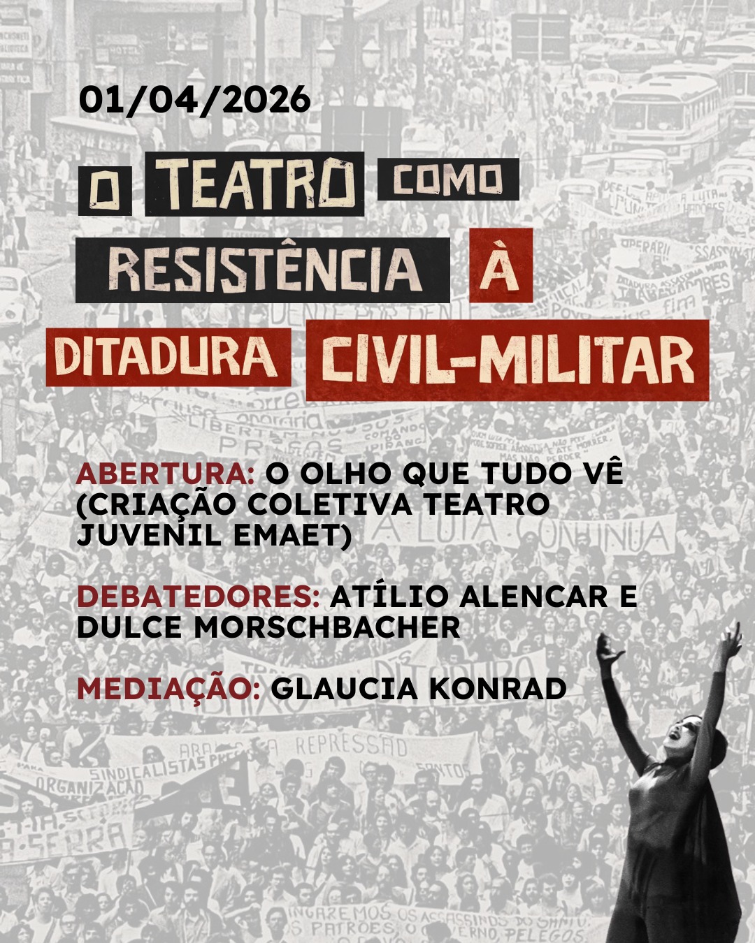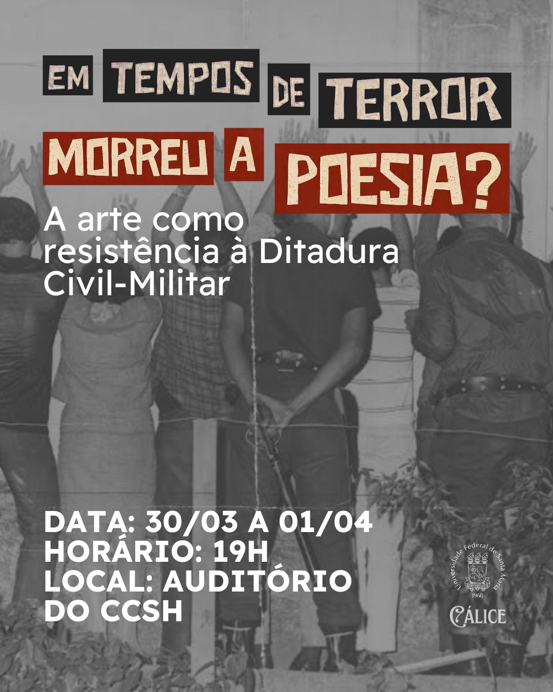 Grupo Cálice/UFSM divulga evento alusivo aos 62 do golpe que inaugurou a Ditadura Civil-Militar.  dias 30 e 31 de março e 01 de abril.