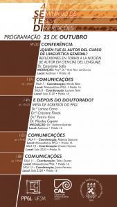 Na abertura do evento, a Profa. Dra. Renata Farias de Felippe tematizou o cenário da literatura contemporânea latino-americana, com a palestra “O antiépico no romance latino-americano contemporâneo: reconfigurações do realismo”. A seguir, na conferência “Monteiro Lobato ainda: entre o moderno e o contemporâneo”, o Prof. Dr. Tiago Alves Valente (UENP) tratou sobre a atualidade e a repercussão da obra de Monteiro Lobato. Na palestra de encerramento, intitulada “¿Quién fue el autor del Curso de lingüística general? Reflexiones en torno a la noción de autor en ciencias del lenguaje”, o Prof. Dr. Estanislao Sofia analisou as abordagens dos manuscritos de Saussure e suas implicações na noção de autoria.O encontro contou, também, com a Mesa das linhas de pesquisa do PPGL e a Mesa de egressos, ocasiões em que foram debatidos os horizontes das Linhas e as experiências profissionais dos diplomados.