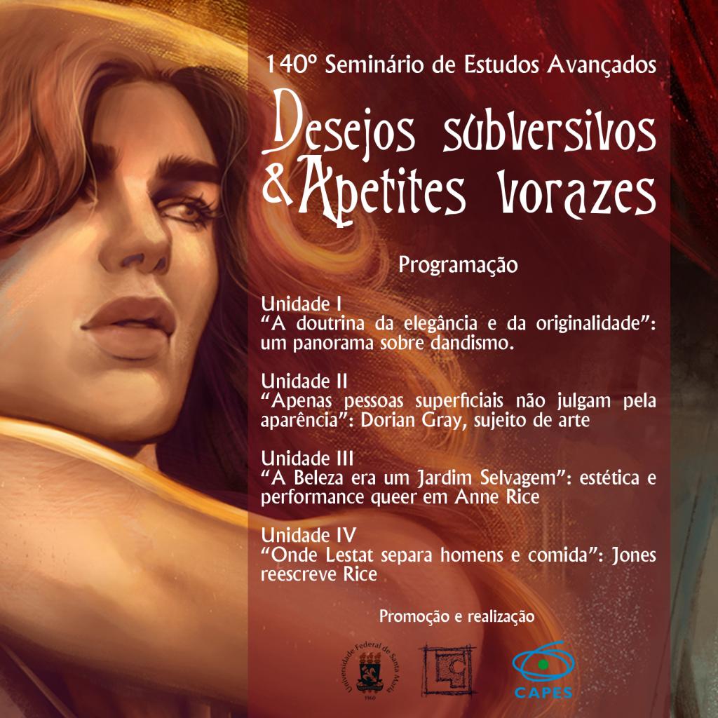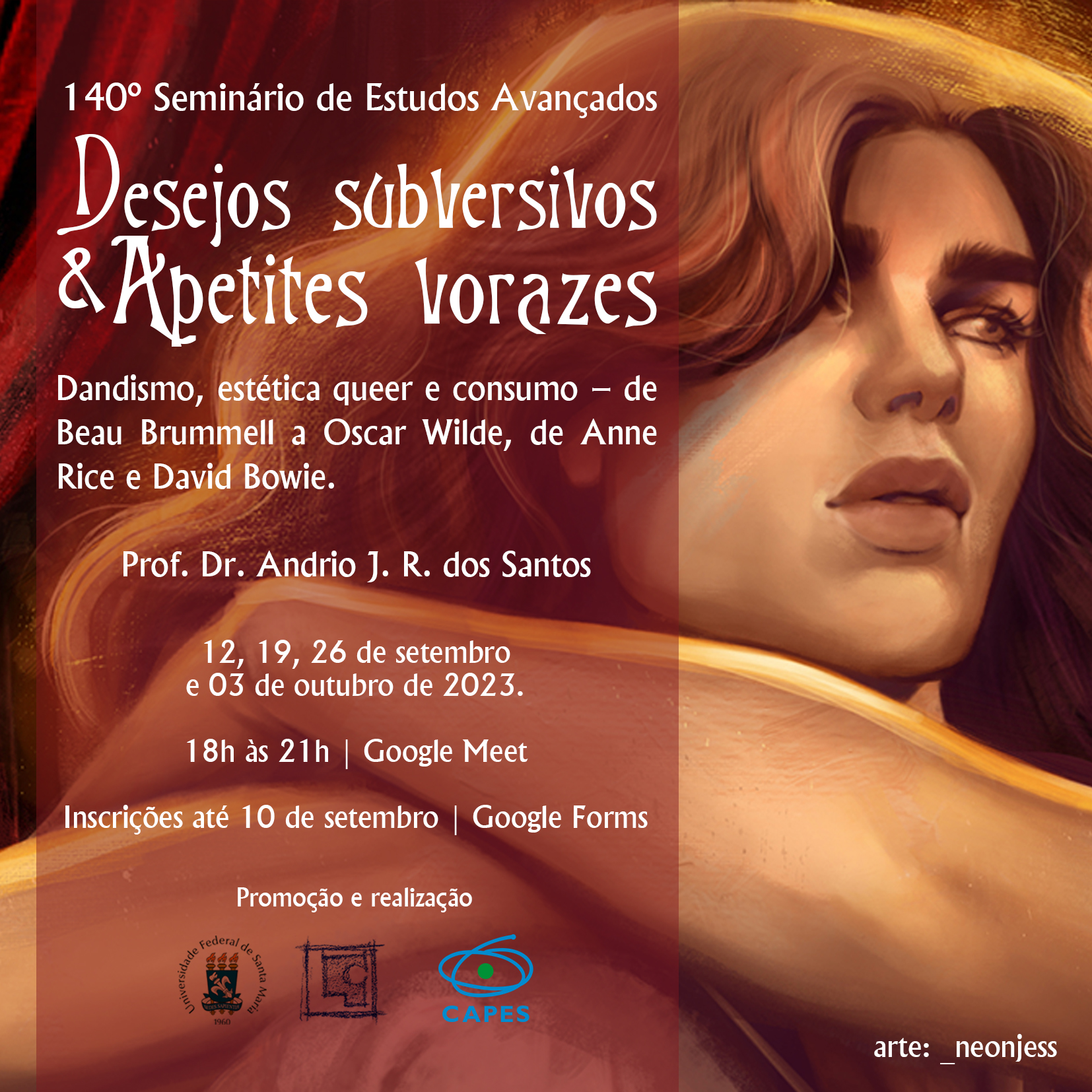 140° Seminário de Estudos Avançados – Desejos subversivos e apetites vorazes: dandismo, estética queer e consumo – de Beau Brummell a Oscar Wilde, de Anne Rice e David Bowie.