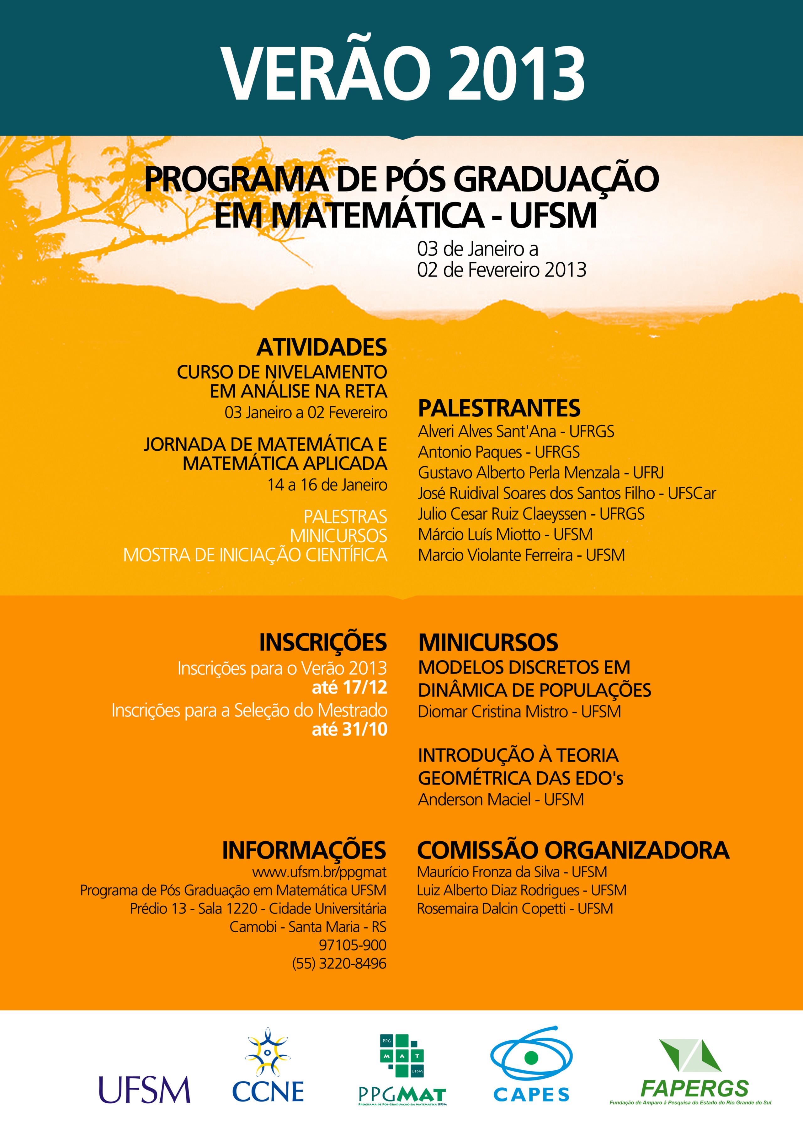 • Curso de verão sobre Análise na Reta, será realizado de 03/01/2013 a 02/02/2013 (6 vagas).