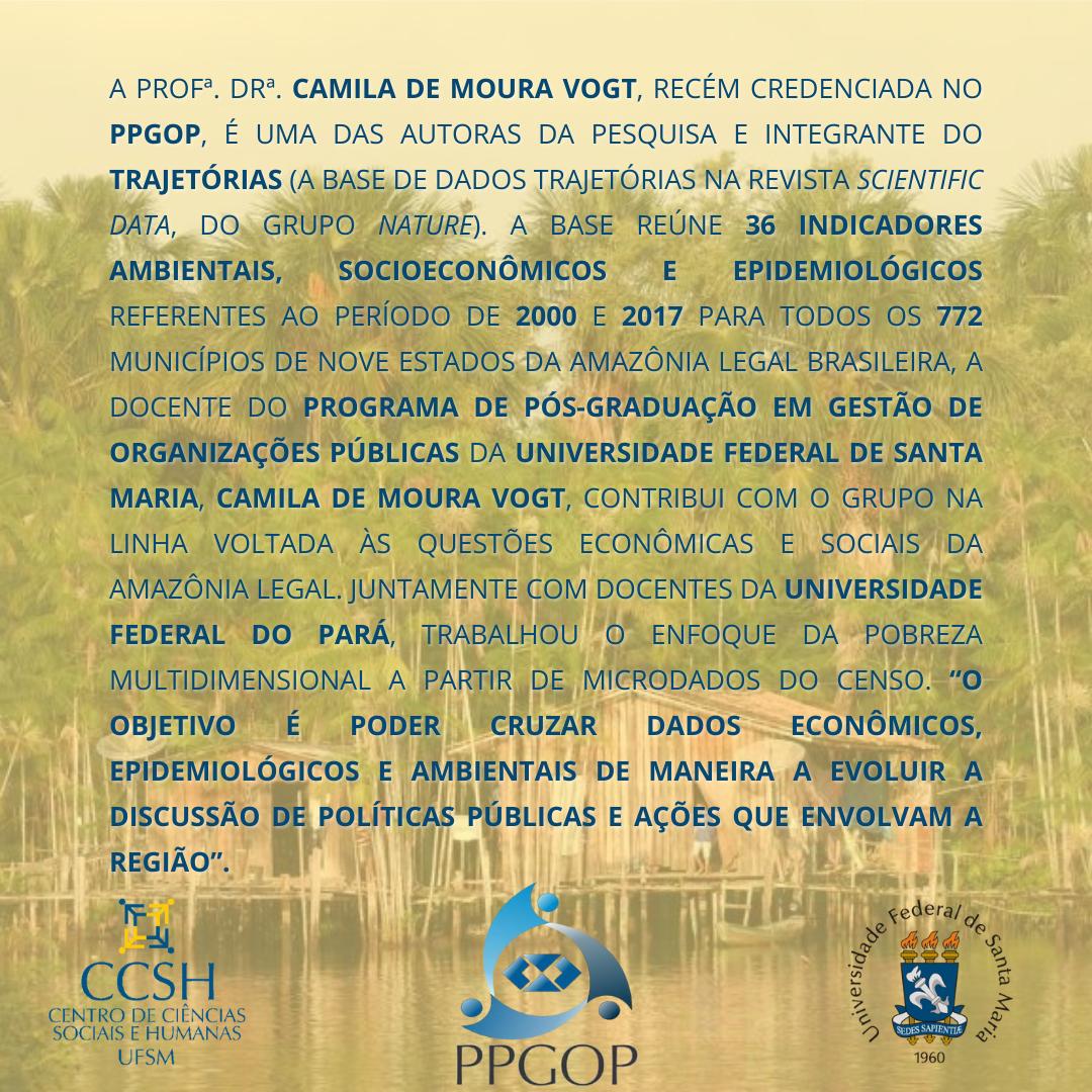 Participação da Profa. Dra. Camila de Moura Vogt recém credenciada no PPGOP na criação da base de dados Trajetórias da Amazônia
