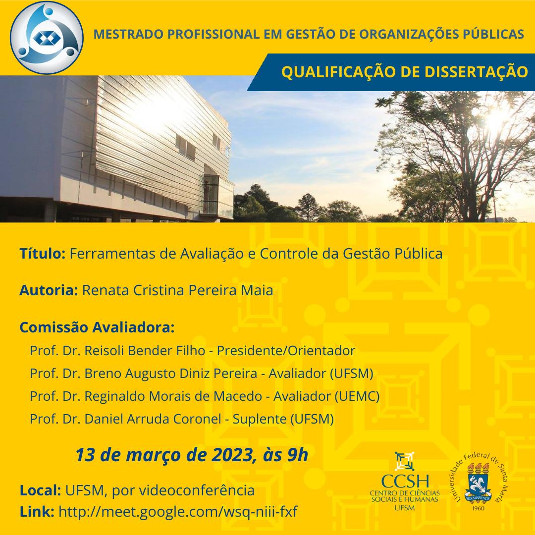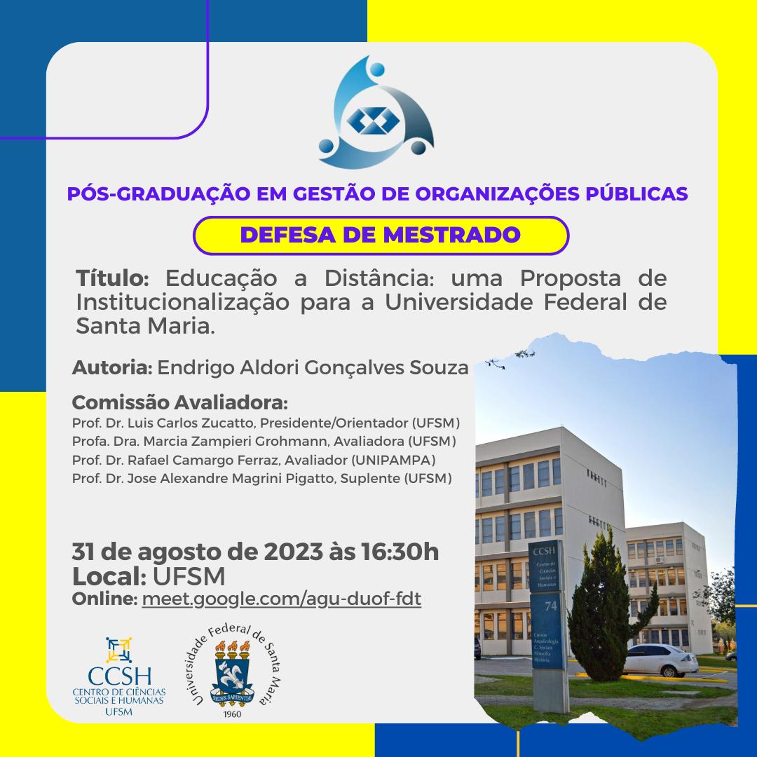 Qualificação de mestrado – Micheli NoetzoldO Programa de Pós-Graduação em Organizações Públicas divulga a banca de qualificação de mestrado da aluna Micheli Noetzold, com o título “Aceitação e [...]
