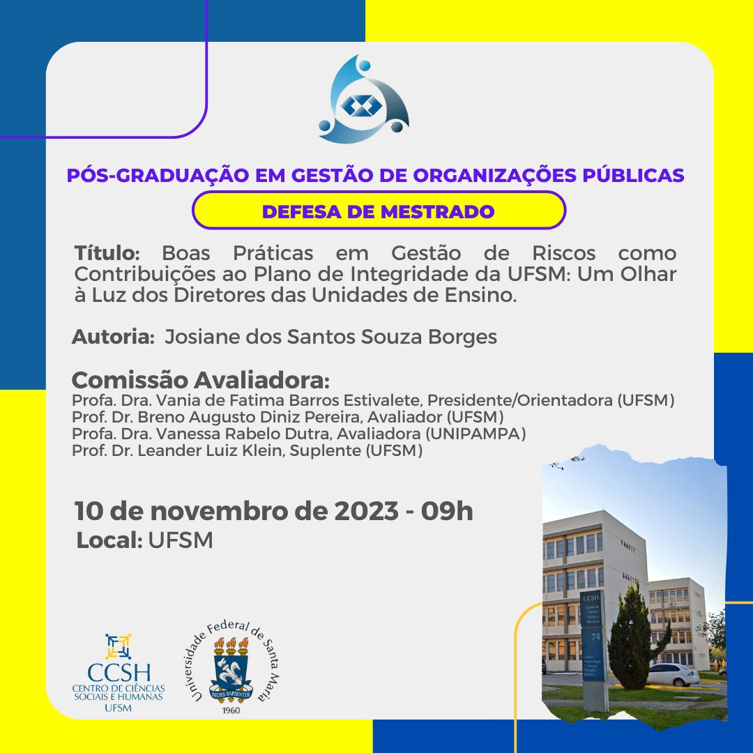 Defesa de mestrado – Luana Brondani CostaO Programa de Pós-Graduação em Gestão de Organizações Públicas divulga a banca de defesa de mestrado da aluna Luana Brondani Costa, com [...]