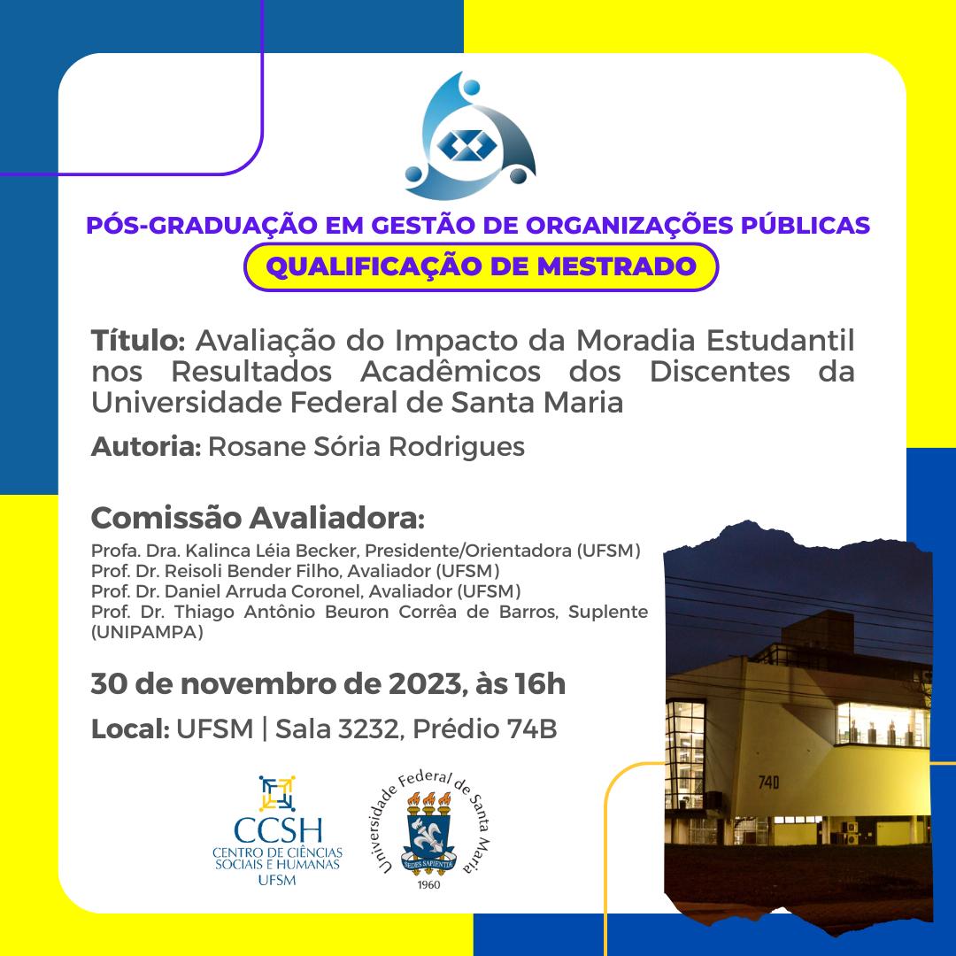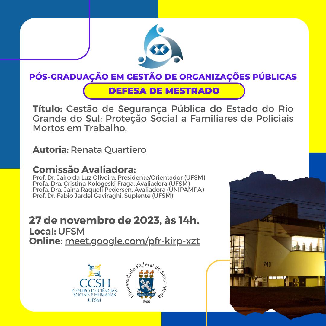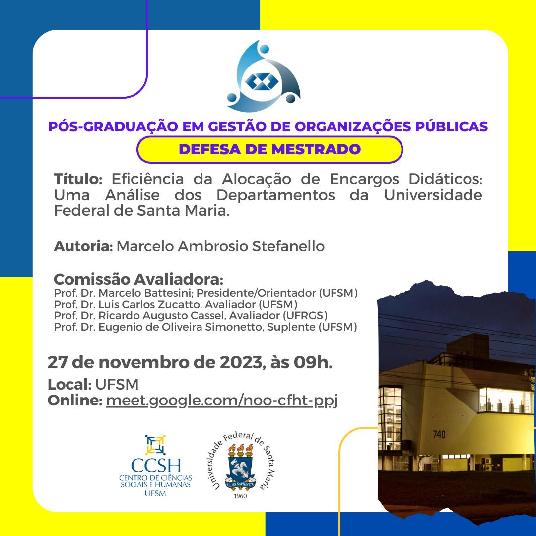 Etapa Entrevista – Data, Horário e Local – Seleção de Mestrado em Gestão de Organizações Públicas do PPGOP, para ingresso no curso no ano de 2024 e para TURMA ESPECIAL IF SULRIO-GRANDENSE, vinculados ao Edital Geral PRPGP/UFSM N. 031/2023 – 3ªO Programa de Pós-graduação em Gestão de Organizações Públicas (PPGOP) da Universidade Federal de Santa Maria (UFSM) torna público os dado referente [...]