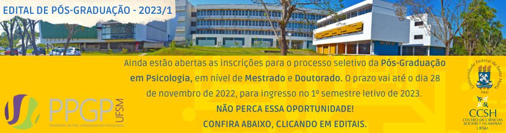 O curso de Pós-Graduação em Psicologia está localizado em Campus Camobi – UFSM na modalidade Mestrado – Presencial sendo Integral o seu turno de funcionamento. A área de conhecimento do curso é classificada como Psicologia da Saúde. Atualmente, a coordenação é de responsabilidade de JANA GONÇALVES ZAPPE, a coordenação substituta de MARCELE PEREIRA DA ROSA ZUCOLOTTO e a secretaria de RUBE AFONSO RODRIGUES NETO.