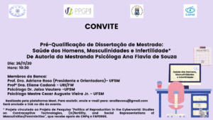 Projeto: “Saúde dos Homens, Masculinidades e Infertilidade” de autoria da Psicóloga Mestranda Ana Flavia de Souza, para participar envie e-mail para anaflavsou@gmail.com