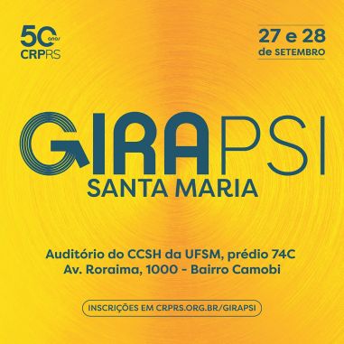 Santa Maria será a próxima cidade a receber a Gira Psi, nos dias 27 e 28/09, no auditório do CCSH da UFSM, prédio 74C (Av. Roraima, 1000 – bairro Camobi). O PPGP/UFSM é parceiro na realização da atividade.