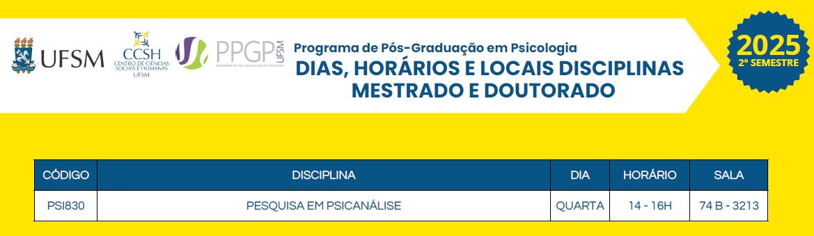 PPGP Divulga dias horários e saladas das disciplinas para o segundo semestre de 2025