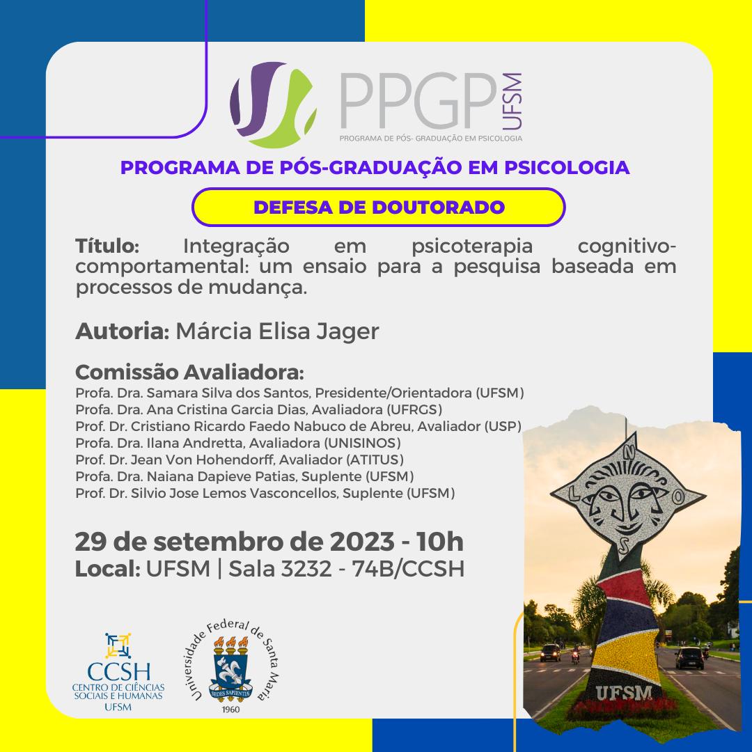 Defesa de doutorado – Janine Gudolle de SouzaO Programa de Pós-Graduação em Psicologia divulga a banca de defesa de doutorado da aluna Janine Gudolle de Souza, com o título [...]