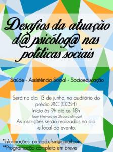 2017- IX Jornada da Pós-Graduação em Psicologia da UFSM – “Desafios da atuação d@ psicólog@ nas políticas públicas”