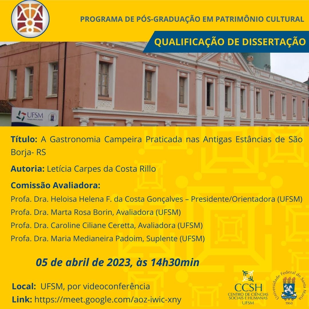 Qualificação de Mestrado – Letícia Carpes da Costa Rillo