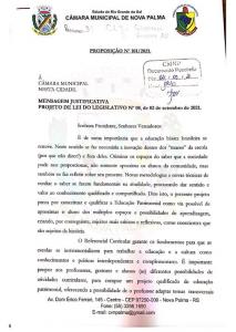Título: Educação Patrimonial: um olhar diferenciado sobre a Quarta Colônia – Criação de uma Lei regulamentando a Educação Patrimonial nas Escolas Públicas do Munícipio de Nova Palma