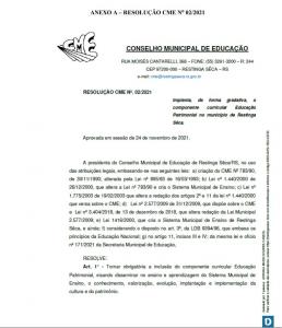Título: Educação Patrimonial como Componente Curricular nos Anos Iniciais das Escolas Municipais de Restinga Sêca, RS – Quarta Colônia