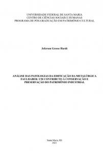Título: Análise das patologias da edificação da Metalúrgica Faulhaber: um contributo à Conservação e Preservação do Patrimônio Industrial