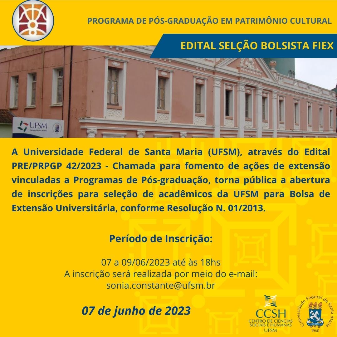 O PPGPC Divulga Edital PRE/PRPGP 042/2023 – Seleção Bolsista Fiex