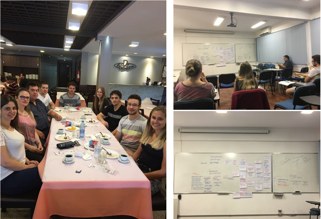 Durante todo o dia 09/Março/2017 o grupo de pesquisa do Professor Marcos A. P. Martins (NUQUIMHE/UFSM), realizou atividades de gestão utilizando o método ZOPP de planejamento e avaliação de projetos por objetivos (Ziel-Orientierte Projekt Planung). O método é utilizado para planejamento participativo na estruturação de projetos nas mais diversas áreas. A partir da ‘árvore de problemas’, foi definido a ‘árvore de objetivos e metas’. O grupo do Professor Marcos buscava, principalmente, definir objetivos de pesquisa para os próximos anos, a partir de um planejamento adequado da integração de novos alunos, melhoria do trabalho em equipe, melhoria na produção científica, atividades extracurriculares (Filosofia), definição de cronograma de metas, indicadores de progresso, etc., que auxiliarão no acompanhamento e eventuais correções de ações planejadas para curto, médio e longo prazos.