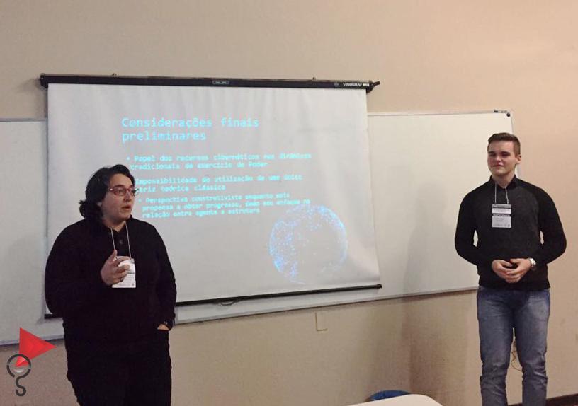 Na ocasião, professora pesquisadora do GECAP Drª Daniellle Jacon Ayres Pinto juntamente com o bolsista de iniciação científica Julio Werle Berwaldt (RI/UFSM) apresentaram a pesquisa, desenvolvida em parceria com o GEPPIC/UFSM, initulada ”Cibersegurança e a Construção do Poder do Estado no Século XXI”. O trabalho integrou o simpósio temático sobre Segurança Internacional e procurou explorar como a difusão dos recursos de poder cibernéticos poderão influenciar e determinar as relações da política internacional. Também houve a apresentação do pós-graduando vinculado ao GECAP, Augusto César Dall’Agnol (PPGEEI/UFRGS) em co-autoria com o pós-graduando Lariecianne Piccolli (PPGEEI/UFRGS) e Tito Lívio Barcellos Pereira (PPGEEI/UFRGS), no simpósio sobre Segurança Internacional.