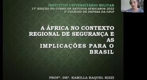 A Prof. Kamilla Rizzi participou do painel da conferência internacional sobre “O Papel da África no Sistema Internacional Contemporâneo“, com a palestra intitulada “A África no Contexto Regional de Segurança e as Implicações para o Brasil“. A professora refletiu sobre questões específicas de segurança regional no continente africano e como elas reverberam pelo Atlântico Sul trazendo implicações para o Brasil. A palestra pode ser acompanhada na íntegra por aqui.