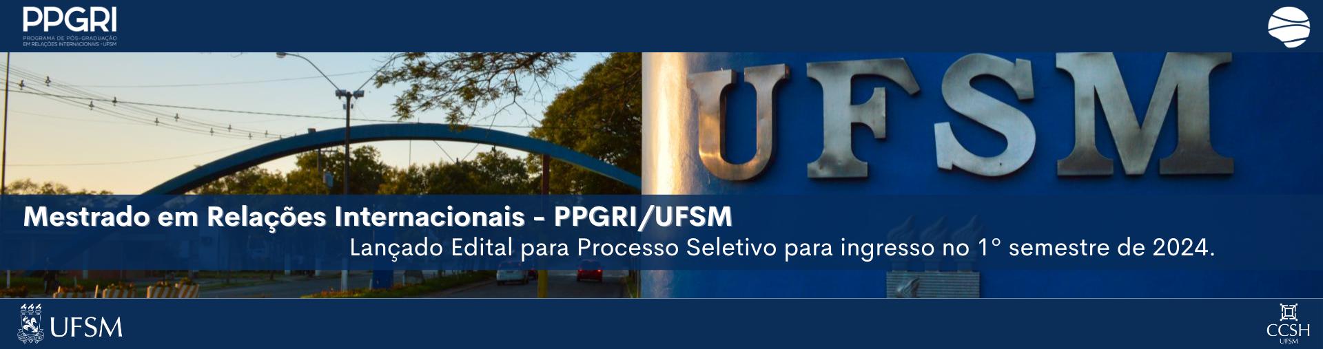 EDITAL N° 002/2024 PPGRI/UFSM – SELEÇÃO DE BOLSISTA 2A: APOIO A ATIVIDADES DO PROGRAMA DEPÓS-GRADUAÇÃO EM RELAÇÕES INTERNACIONAISPara maiores informações acessar o link: PPGRI-2024-UFSM-Edital_02_Bolsa_2A_assinado Atenção: as inscrições serão recebidas, também, via e-mail do PPGRI: ppgri@ufsm.br