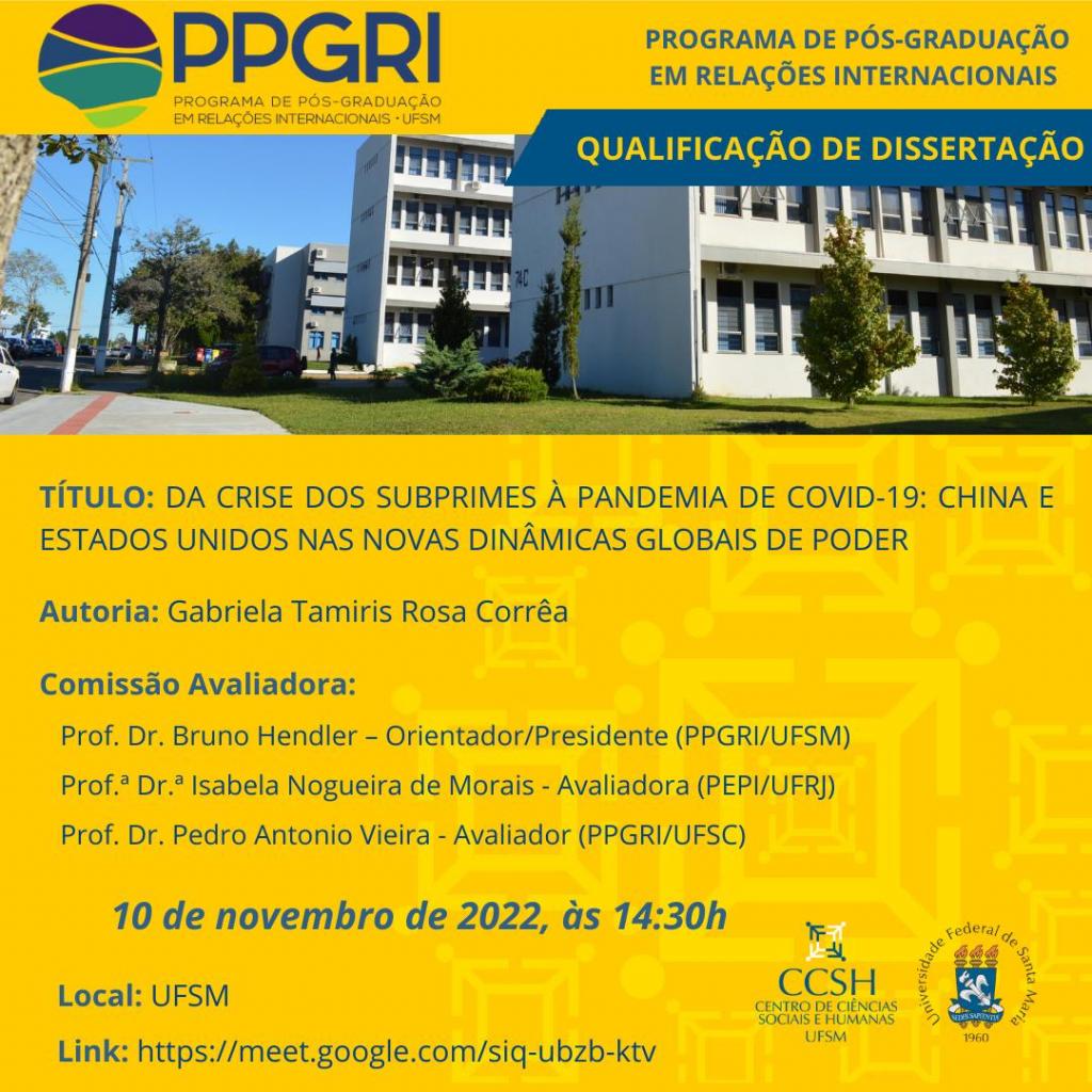 Defesa de Qualificação de Dissertação – Gabriela Tamiris Rosa Corrêa