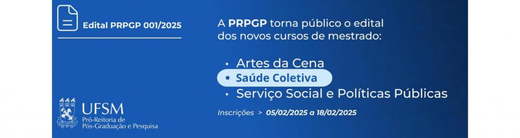 PPGSC/UFSM abre inscrições para o Mestrado em Saúde Coletiva com ingresso em 2026