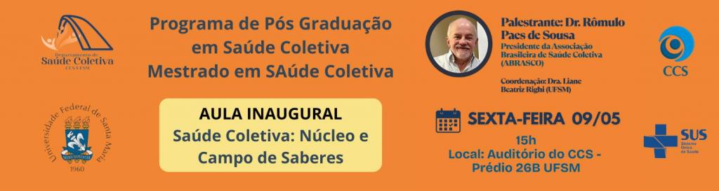 O curso de Pós-Graduação em Saúde Coletiva está localizado em Campus Camobi - UFSM na modalidade Mestrado - Presencial sendo Diurno o seu turno de funcionamento. A área de conhecimento do curso é classificada como CIÊNCIAS DA SAÚDE. Atualmente, a coordenação é de responsabilidade de EDI FRANCIELE RIES, a coordenação substituta de ROSANGELA DA COSTA LIMA e a secretaria de ALEX ROSA DA SILVA.
