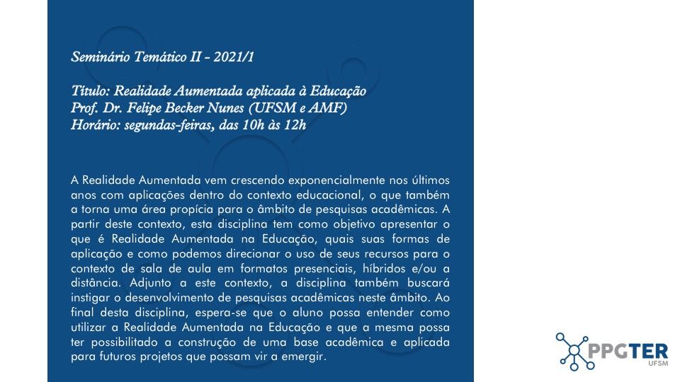 Informações sobre a disciplina de Seminário Temático II, ofertada para o primeiro semestre de 2021.