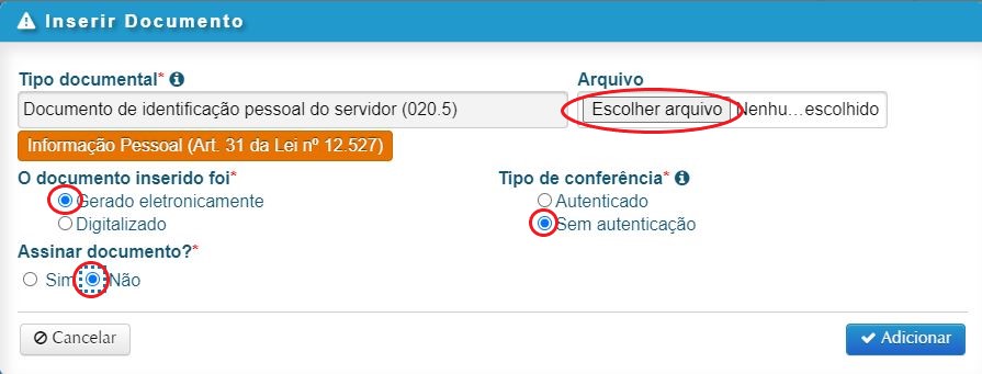 - 020.5 – Documento de identificação pessoal do servidor (com validade indeterminada);