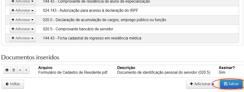 Após, clicar em “Adicionar”, para incluir cada documento;