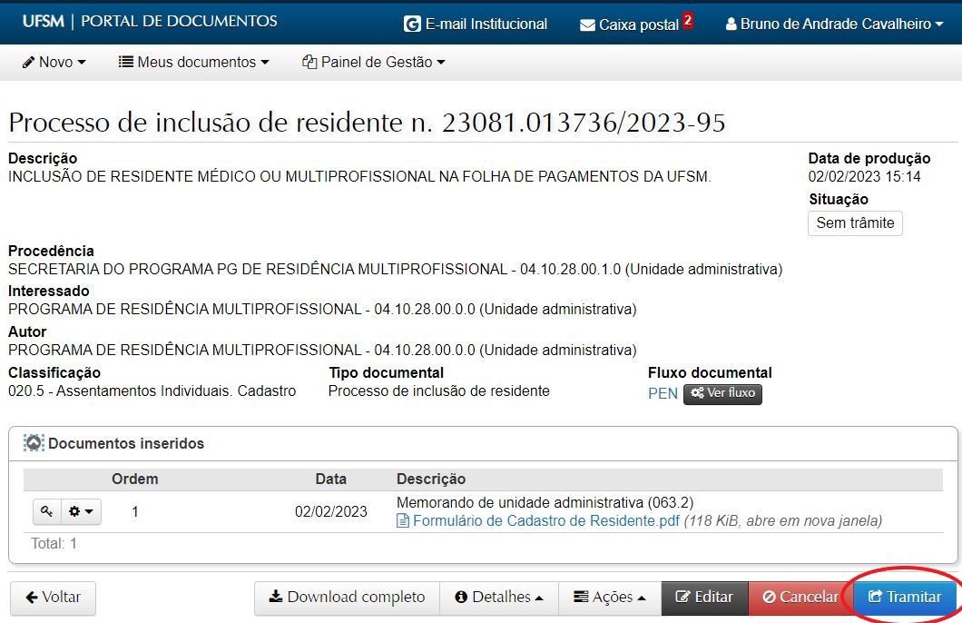 7) Após a inclusão de todos os documentos, clicar em “Tramitar”;