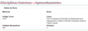 A página de Disciplinas Externas (Aproveitamento) deve ser ignorada e clicando-se em PRÓXIMO.