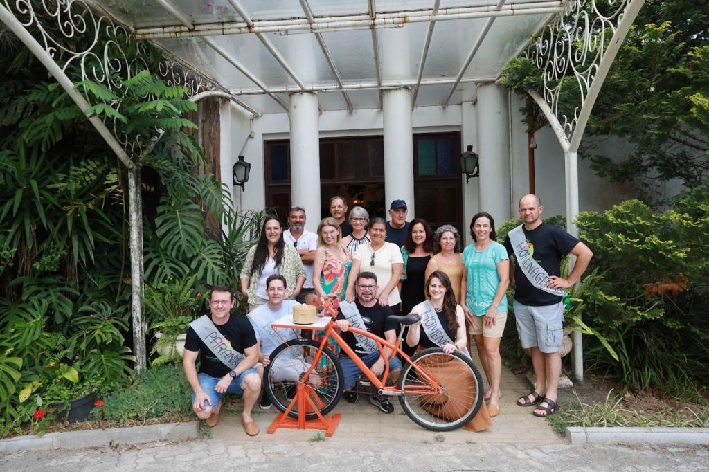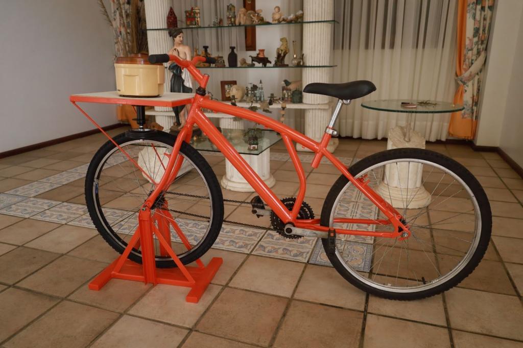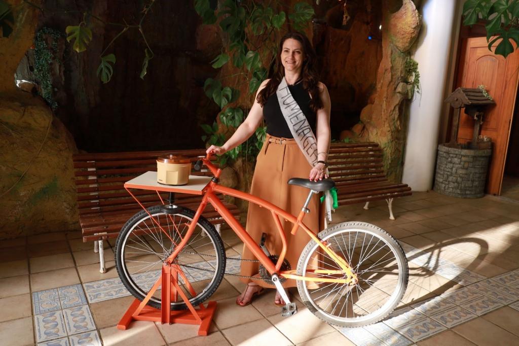 Tecnologia social criada pelos alunos, uma bicicleta adaptada para processar frutas, é uma homenagem para uma professora do curso.