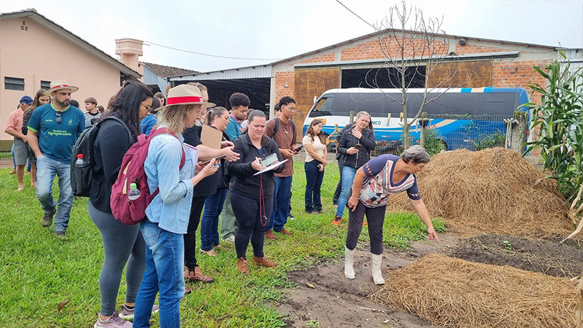 Participaram da atividade 28 estudantes, acompanhados pelo professor Ezequiel Redin, responsável pela disciplina de Extensão Rural, e pela professora Tatiana Tasquetto Fiorin, da área de Olericultura. A visita contou ainda com a presença da extensionista da Emater/RS-Ascar, Cláudia Bernardini, que destacou a importância da assistência técnica e da extensão rural no fortalecimento das famílias agricultoras.