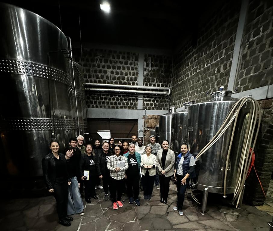 No dia 21 de junho, estudantes do primeiro semestre do curso Técnico em Alimentos participaram de uma aula prática conduzida pela enóloga e Engenheira Agrônoma Dra. Aline Fogaça, na Vinícola Velho Amâncio, localizada em Santa Maria, RS.