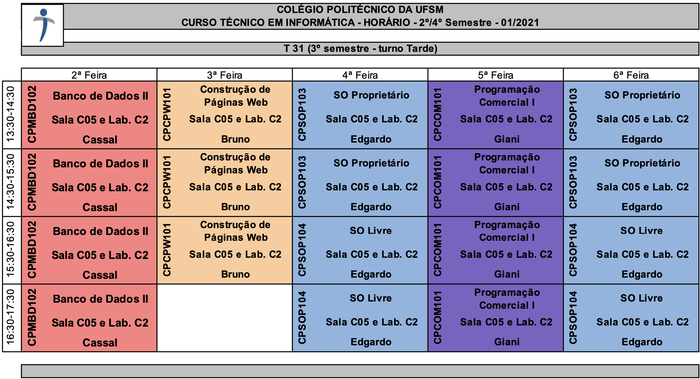 Grade de Horários – 1º Semestre de 2021 (REDE)