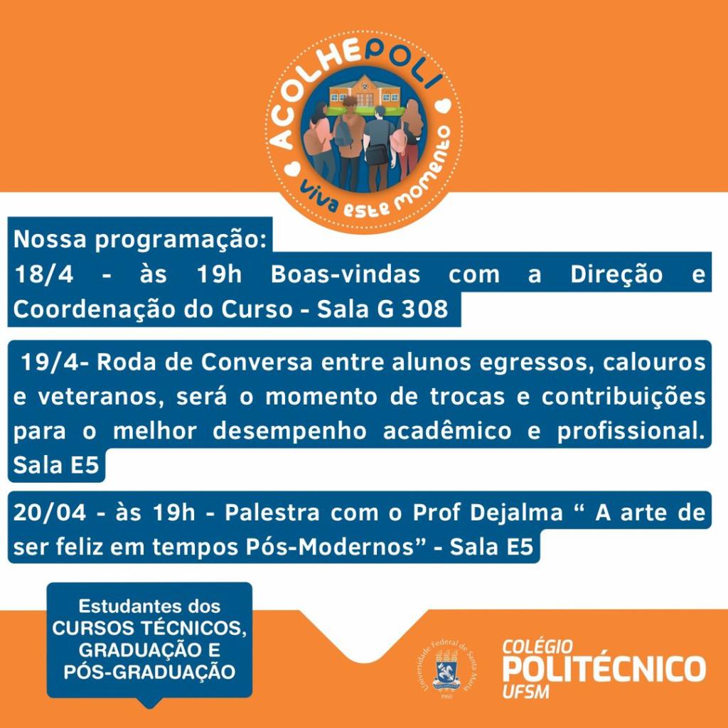 Na próxima semana, acontecerá o Acolhe Poli com uma programação bem especial para recepcionar nossos estudantes. Confira a programação do Curso Técnico em Secretariado.