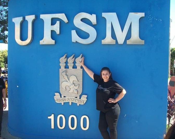 Sempre levarei a UFSM no coração, pois ela é parte de mim! A pessoa que me tornei, o quanto evoluí, o tanto que aprendi, os amigos que fiz… tudo foi fruto da oportunidade de trilhar minha jornada acadêmica na UFSM, e é por isso que sou apaixonada por essa Universidade.”