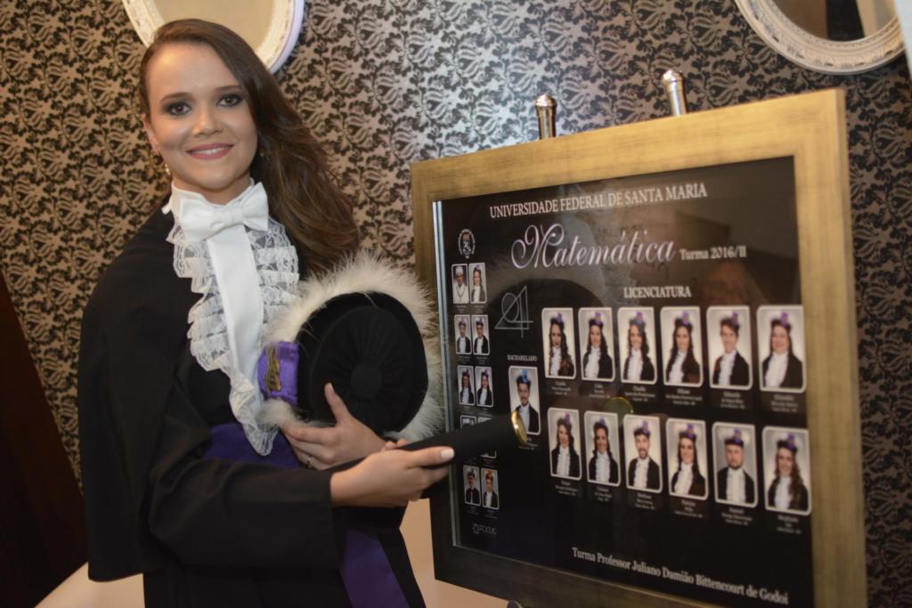 Formada em Comunicação Social – Jornalismo (2016). “Com dez anos, eu e minha avó Tereza íamos todas das manhãs até a UFSM para vender pastéis e bolos nos intervalos das aulas no CTISM. Em uma peça pequena vendíamos os lanches para alunos e professores. Assim foi minha infância, ajudando minha avó e crescendo dentro da universidade. Vez ou outra ela dizia: – Um dia você vai estudar aqui, nestas salas, nestes prédios como aluna para ser alguém na vida. Uma vida melhor. Uma década se passou e a menina que vendia pastéis com a avó entrou na Universidade e realizou não apenas o sonho da sua avó mas também de uma família inteira que teve a primeira pessoa graduada em uma universidade federal. A UFSM me proporcionou realizar o sonho da minha avó, ainda que ela não estivesse mais entre nós, suas palavras e a sua força de vontade me motivaram a me graduar e crescer como pessoa dentro dessa instituição. Uma vida inteira motivada a crescer e ser melhor, é isso o que a UFSM significa para mim.”