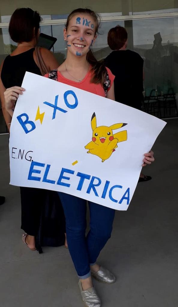 “A UFSM faz parte da minha vida desde sempre, já que minha mãe trabalha na universidade e frequento o campus-SM desde pequena! A UFSM teve e continua tendo um papel muito importante para mim e para a comunidade. Tenho orgulho de dizer que fui aluna do Ensino Médio Técnico no CTISM, e se hoje curso a Elétrica foi por me apaixonar pela área desde cedo. Alguns momentos marcantes que já vivi na UFSM foram uma apresentação no Descubra, participação em uma Feira Cultural e Feira de Ciências, e atualmente fazer parte de um Grupo de Pesquisa como estudante de Iniciação Científica. É uma honra fazer parte da história da UFSM, sendo essa universidade pública, cheia de diversidade e de muita qualidade!”