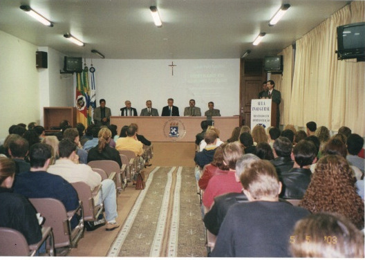 “Instalação do Mestrado em Administração em 2002. Participação do coordenador e criador do Mestrado em Administração Prof. Dr. Milton Luiz Wittmann; Presidente da mesa: Reitor Paulo Jorge Sarkis no Auditório do CCSH, na Antiga Reitoria no centro da cidade.”