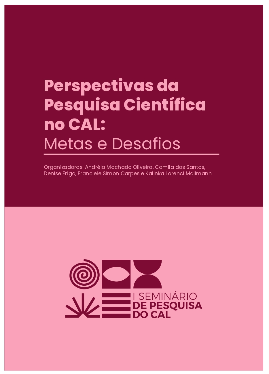 Esse livro é resultante do I Seminário de Pesquisa do CAL — Centro de Artes e Letras, evento realizado no ano de 2022, que reuniu docentes, técnicos administrativos e discentes em torno de discussões provocativas e enriquecedoras sobre o desenvolvimento da pesquisa científica n o Centro de Artes e Letras da UFSM.
