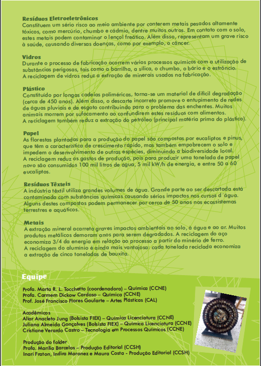 Sobre: O grupo Incorpore é um programa de extensão do Departamento de Química da Universidade Federal de Santa Maria, criado para desenvolver e sensibilizar a comunidade interna e externa da UFSM sobre questões ambientais.