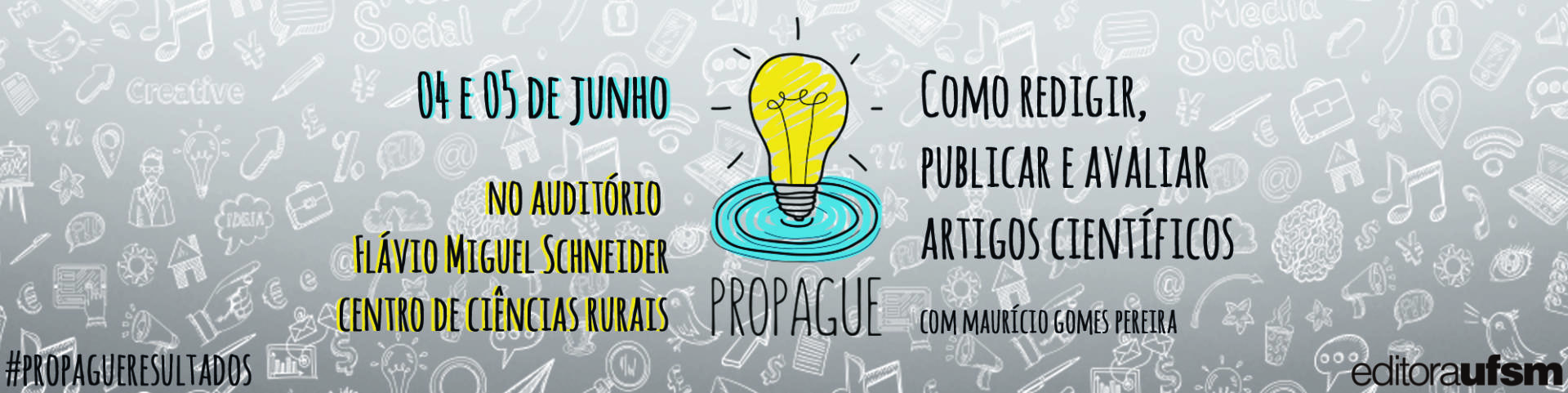 A Editora UFSM promoverá, nos dias 04 e 05 de junho de 2019, a segunda edição do PROPAGUE. Neste ano, com o tema “Como redigir, publicar e avaliar artigos científicos”, o evento será ministrado por Maurício Gomes Pereira, doutor em epidemiologia e professor emérito da Universidade de Brasília.