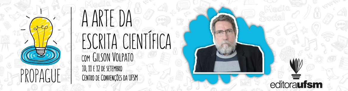 O evento PROPAGUE: A Arte da Escrita Científica acontecerá nos dias 10, 11 e 12 de setembro de 2018, no Centro de Convenções da UFSM. Em sua primeira edição, o curso será ministrado pelo Professor Doutor Gilson Volpato, palestrante com reconhecimento nacional na área de redação científica. Serão abordadas questões como a educação e a mentalidade científica no campo acadêmico, além de aspectos práticos para a elaboração e publicação de um texto científico.