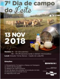 No próximo dia 13 de novembro acontecerá o  7º Dia de Campo do Leite, realizado pela Embrapa Clima Temperado, em Capão do Leão/RS.  O evento irá reunir produtores, técnicos e estudantes da região Sul do Rio Grande do Sul, além de representantes de entidades parceiras, para discutir os sistemas de produção leiteira. O Prof. Vicente Silveira foi convidado para participar do referido evento e  para apresentar o Projeto Nexus Pampa em reunião da equipe do leite, no dia 14 de novembro, às 10h. Maiores informações podem ser acessadas no Portal da Embrapa.