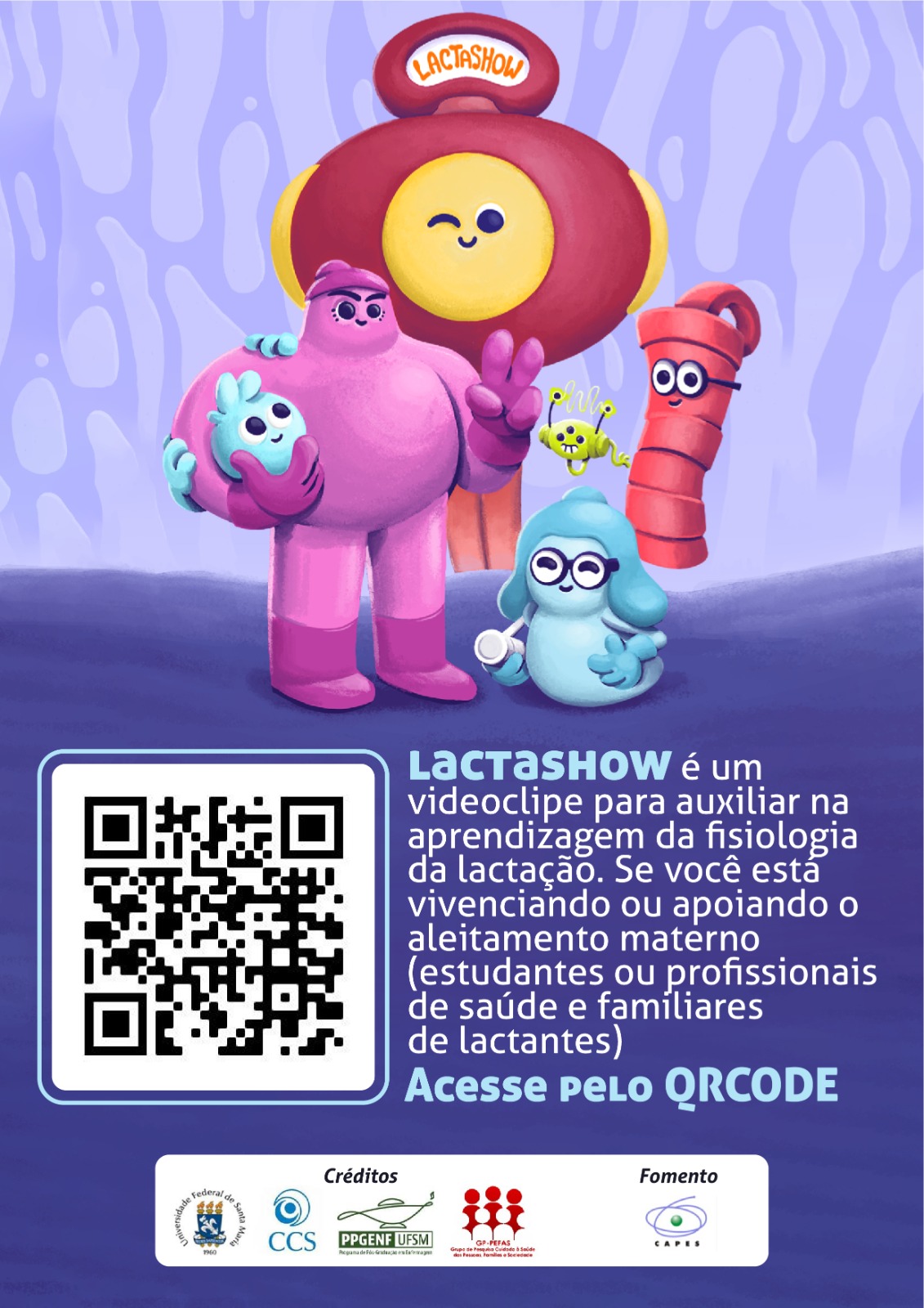 Tecnologia educativa audiovisual com o objetivo de promover a aprendizagem da fisiologia da lactação. Foi criada por meio de uma abordagem participativa, com conteúdo baseado em evidências científicas. Validada em conteúdo por profissionais da área da saúde como ferramenta para introduzir o tema de aleitamento materno na formação de estudantes da saúde e na educação permanente de profissionais, e para mediar ações de educação em saúde com gestantes e/ou puérperas e sua rede de apoio.