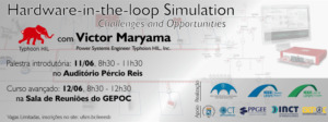 Workshop ministrado pelo Eng. Victor Maryama (Engenheiro de suporte da empresa Typhoon Hil). Data: 11 e 12 de junho de 2018.