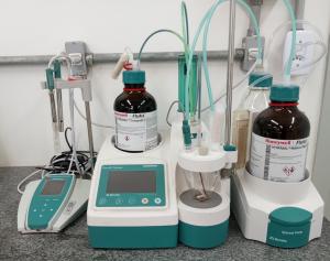 Eco KF Tiltrator, ou titulador Karl Fischer (KF) é um instrumento utilizado para determinar o teor de água em amostras, possuindo uma faixa de detecção sensível (limites de detecção na faixa de µL).
